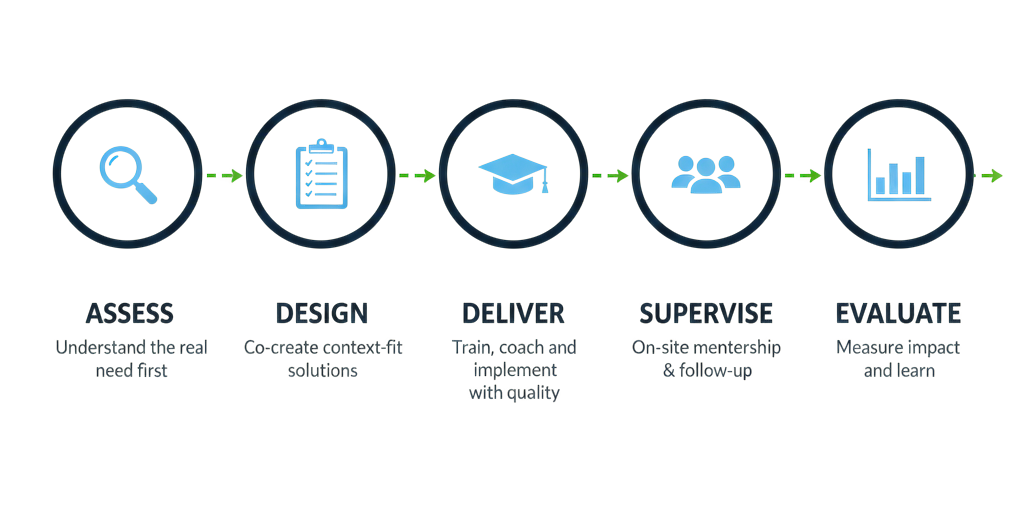 Roshan Health Management empowers health professionals and institutions by providing high-quality training, technical support, and evidence-based solutions that enhance healthcare delivery, community health outcomes, and system resilience.
